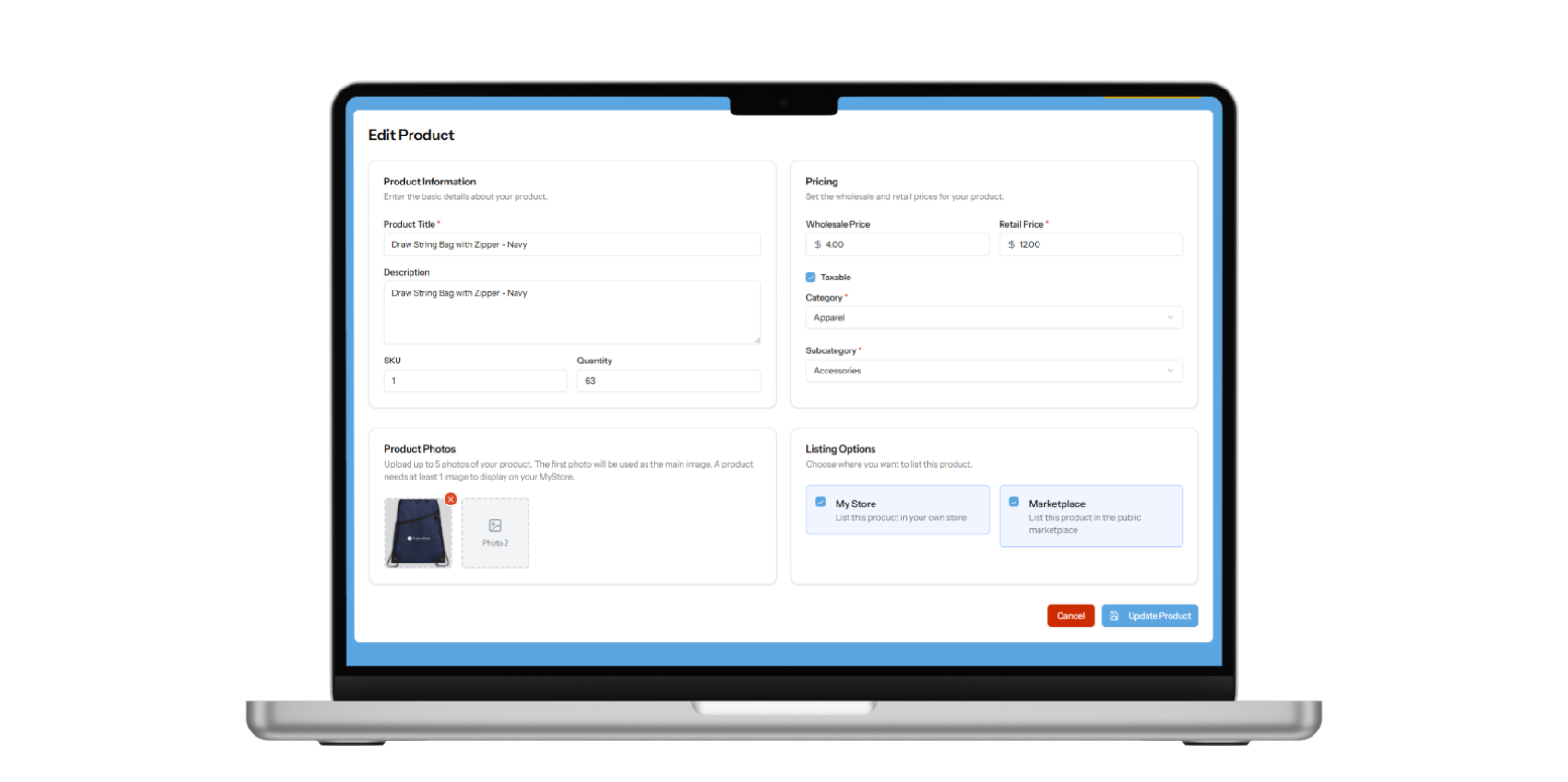 Easily manage your entire inventory from one dashboard. Track quantities, updates, and product details in real time to maintain accurate stock levels and streamline operations.
